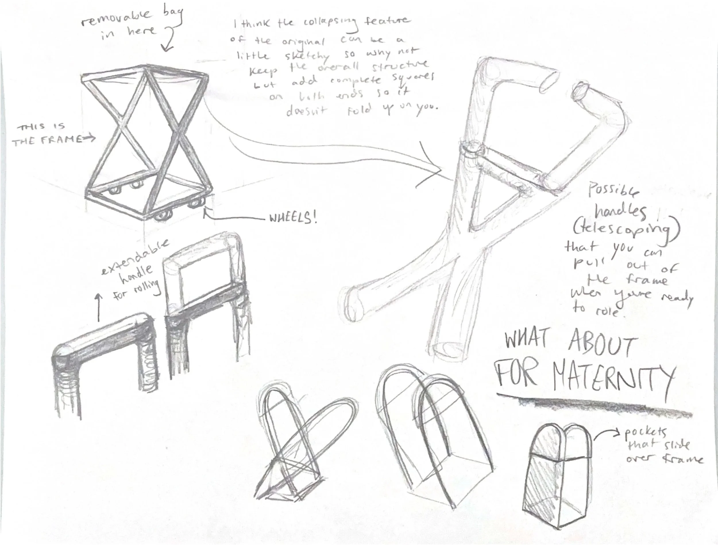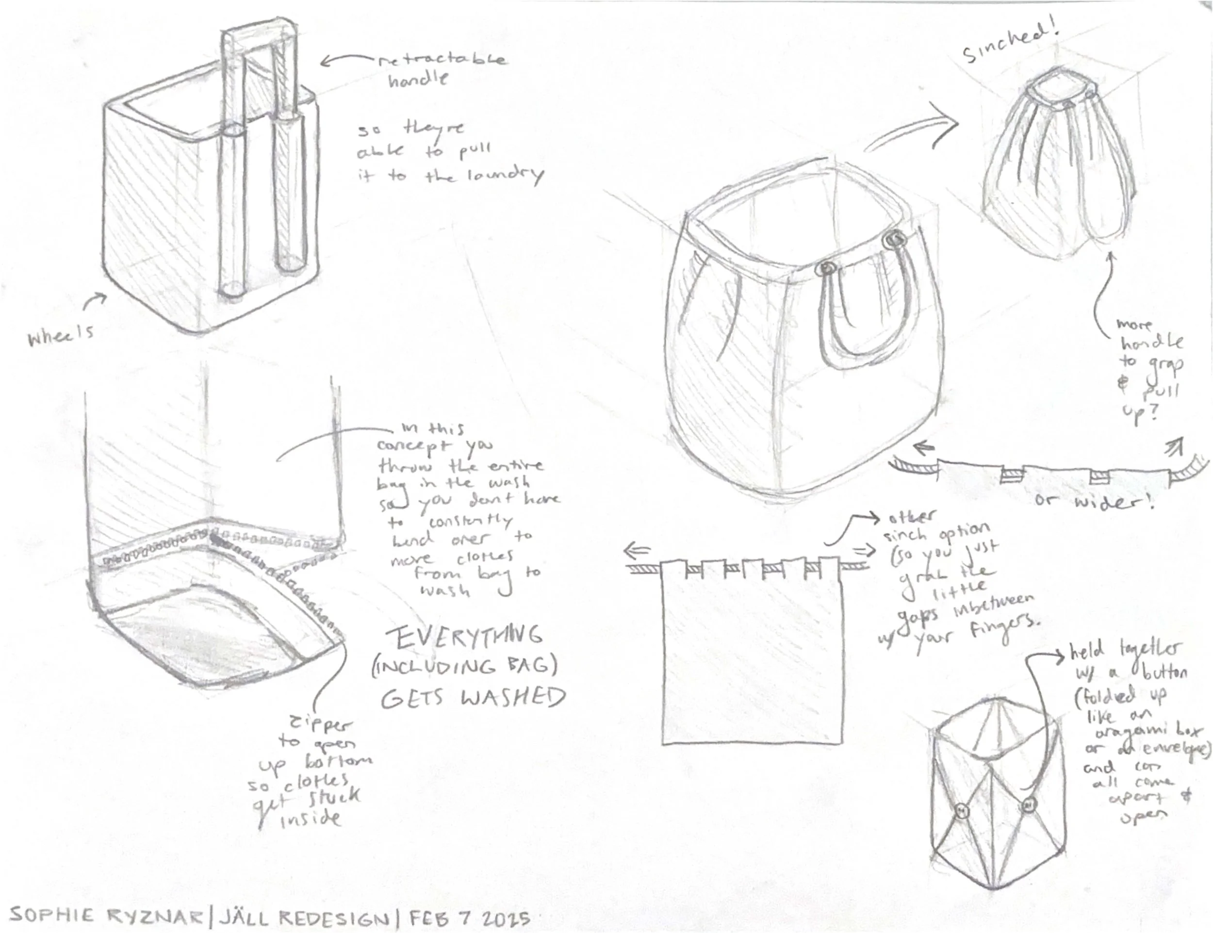 I not only was concerned with how the JÄLL could be improved ecologically, but also sociologically. I began sketching how the JÄLL could be more accessible for people with mobility issues who struggle with daily tasks around the home.