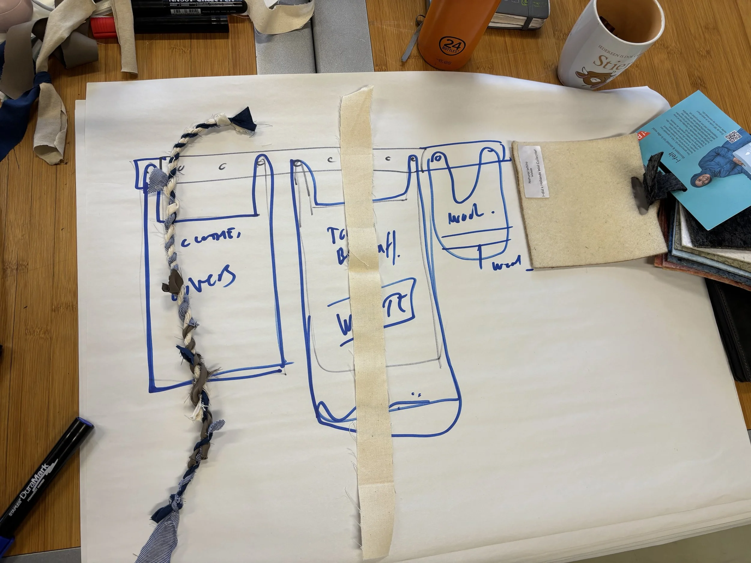 Following my sketches, I began exploring different materials to be used as the single material in my design. I began with flax rope, as it was easily accessible in Rotterdam and could eaily be grown locally and sourced. I finally landed on recycled fabric, as it also could be sourced locally as well as thrown in the wash.