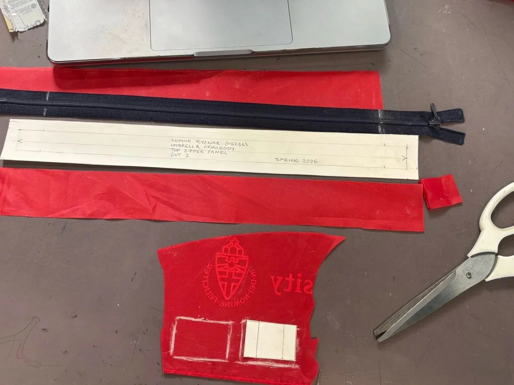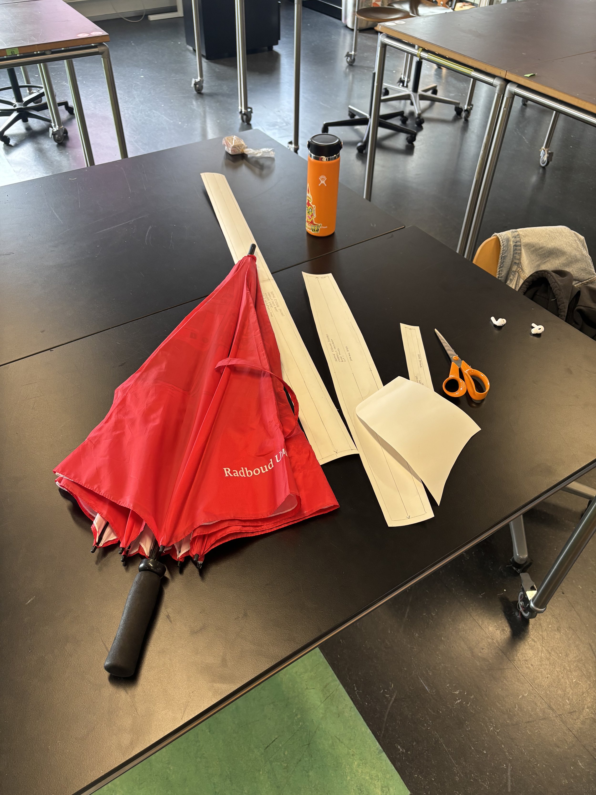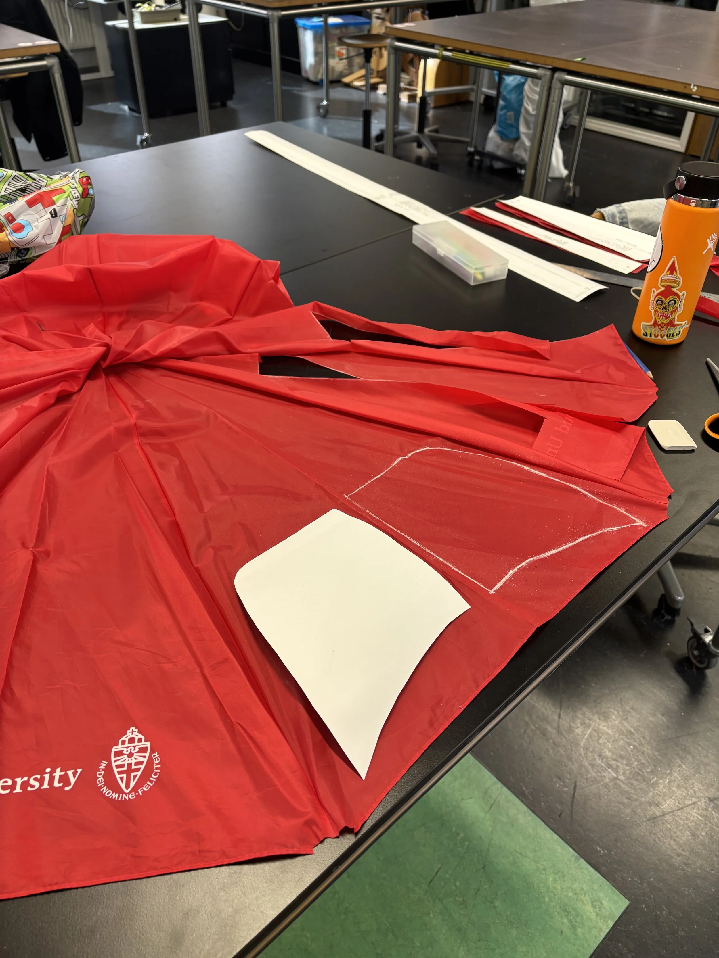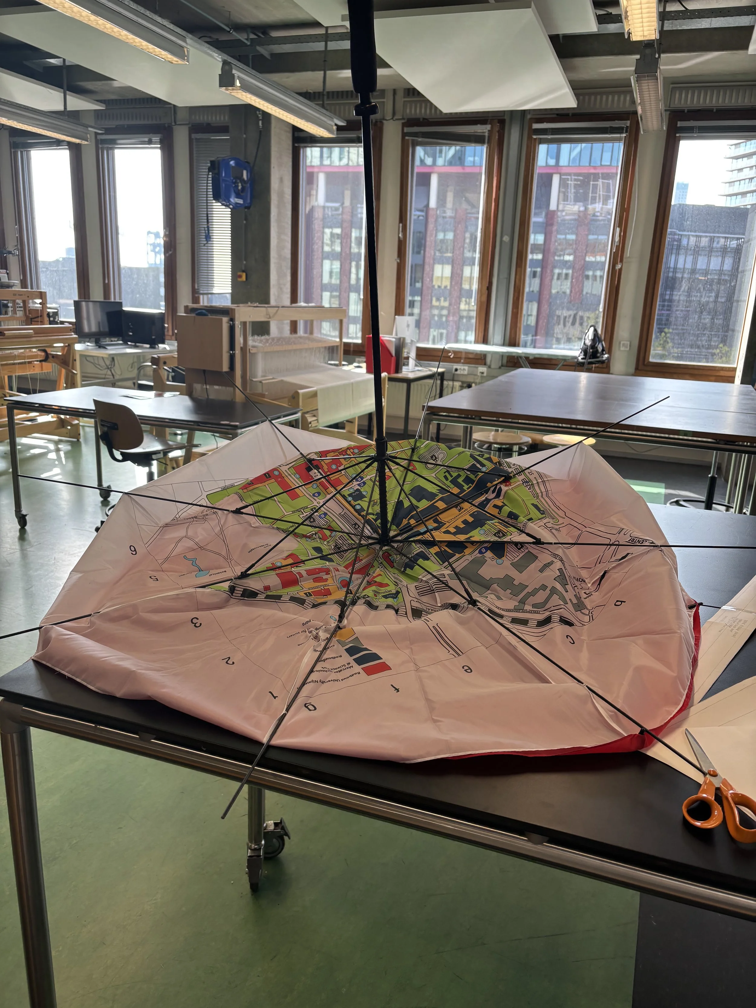 I found this umbrella discarded on the streets on a late-night walk home in Rotterdam. I had been looking for a lightweight bag to stuff in my carry-on for an upcoming trip, and then it hit me - this was the perfect material. The most challenging part of this process was working with the shape of the original object.