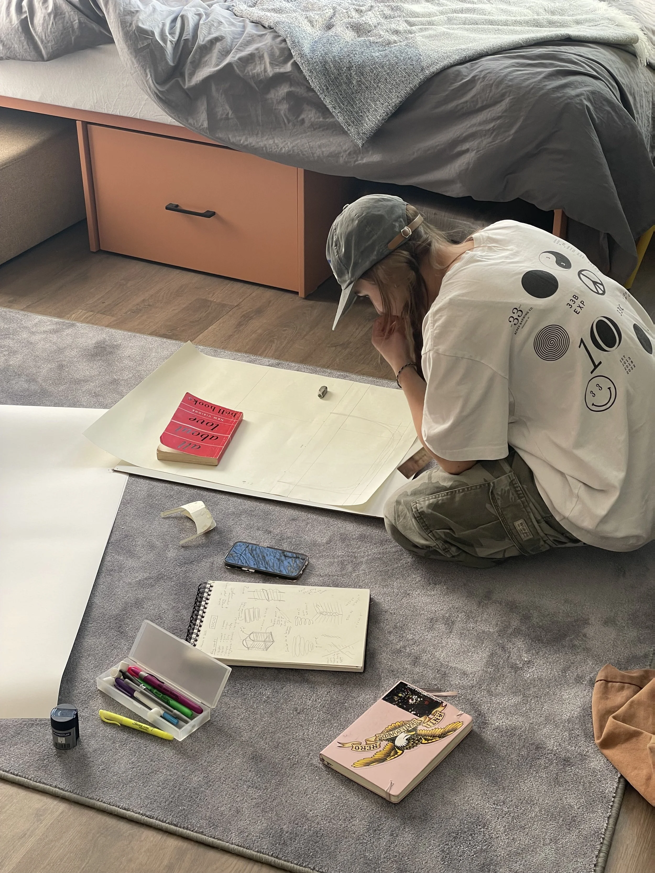 After finding a general shape I was happy to pursue, I created a card model and made my pattern based on that. Then, I began to sew.